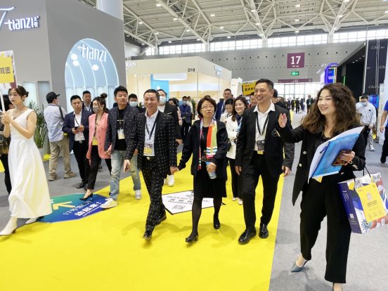 奥丽侬集团董事长何炳祥先生携手中国针织工业协会副会长兼秘书长瞿静女士与业界嘉宾共同巡馆