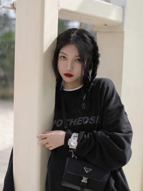哪一个女生能抵挡住红色诱惑呢?以低饱和度的灰色卫衣打底,腕间的一抹红带来蓬勃而出的青春气息,活力感溢出屏幕。